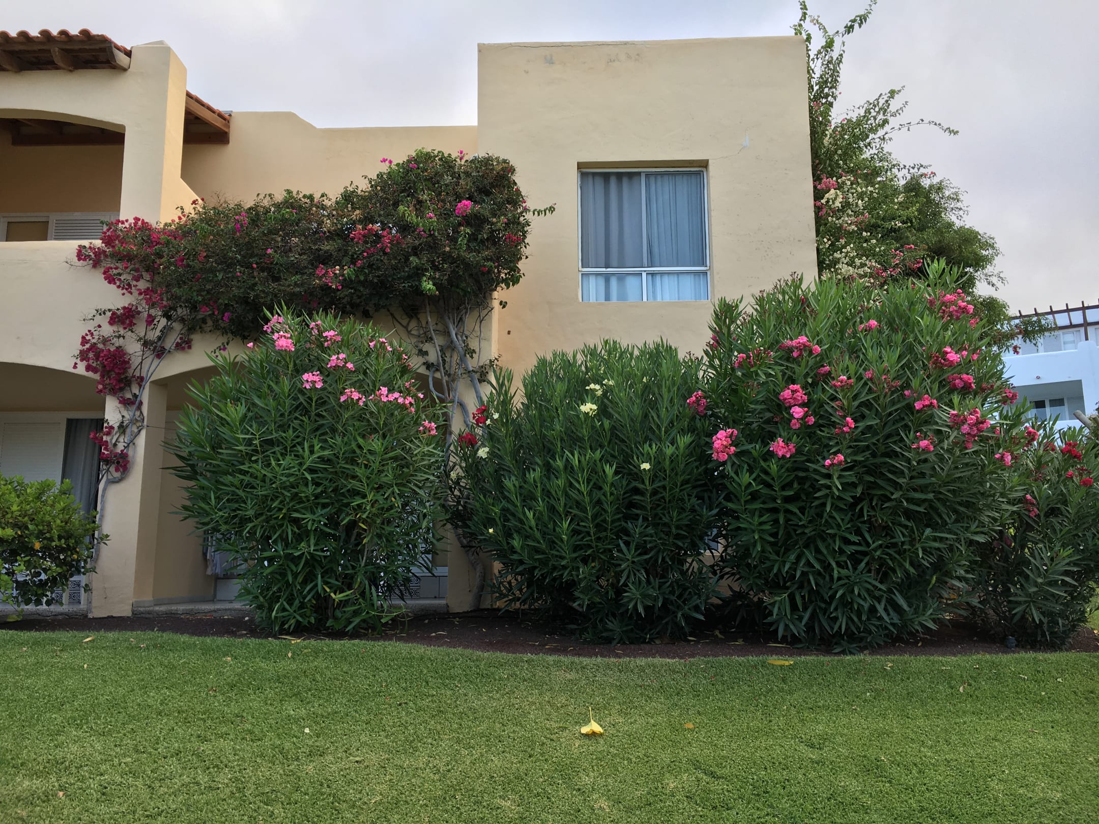 unser FamilienZimmer Economy - hinter dem wunderschönen Oleander -Busch