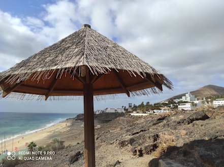 auf der Treppe vom Club zum Strand. Sonnenpause unterm Sonnenschirm