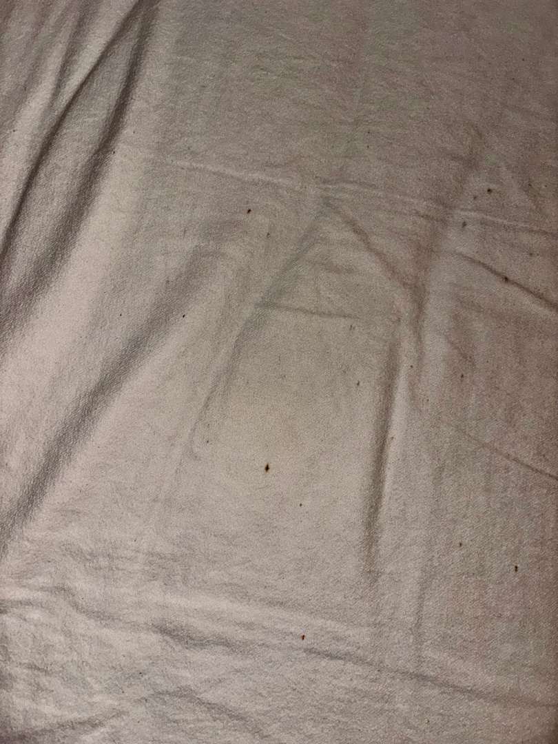 ZimmerKotspuren auf dem Bettlaken