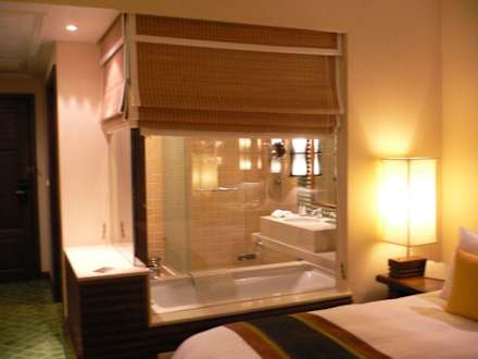 Sicht aus dem Deluxe Zimmer ins gläserne Bad.