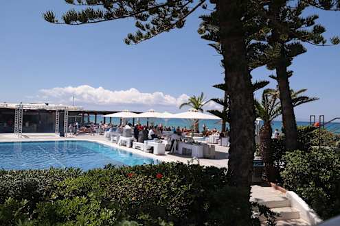 Blick auf Pool und Bar