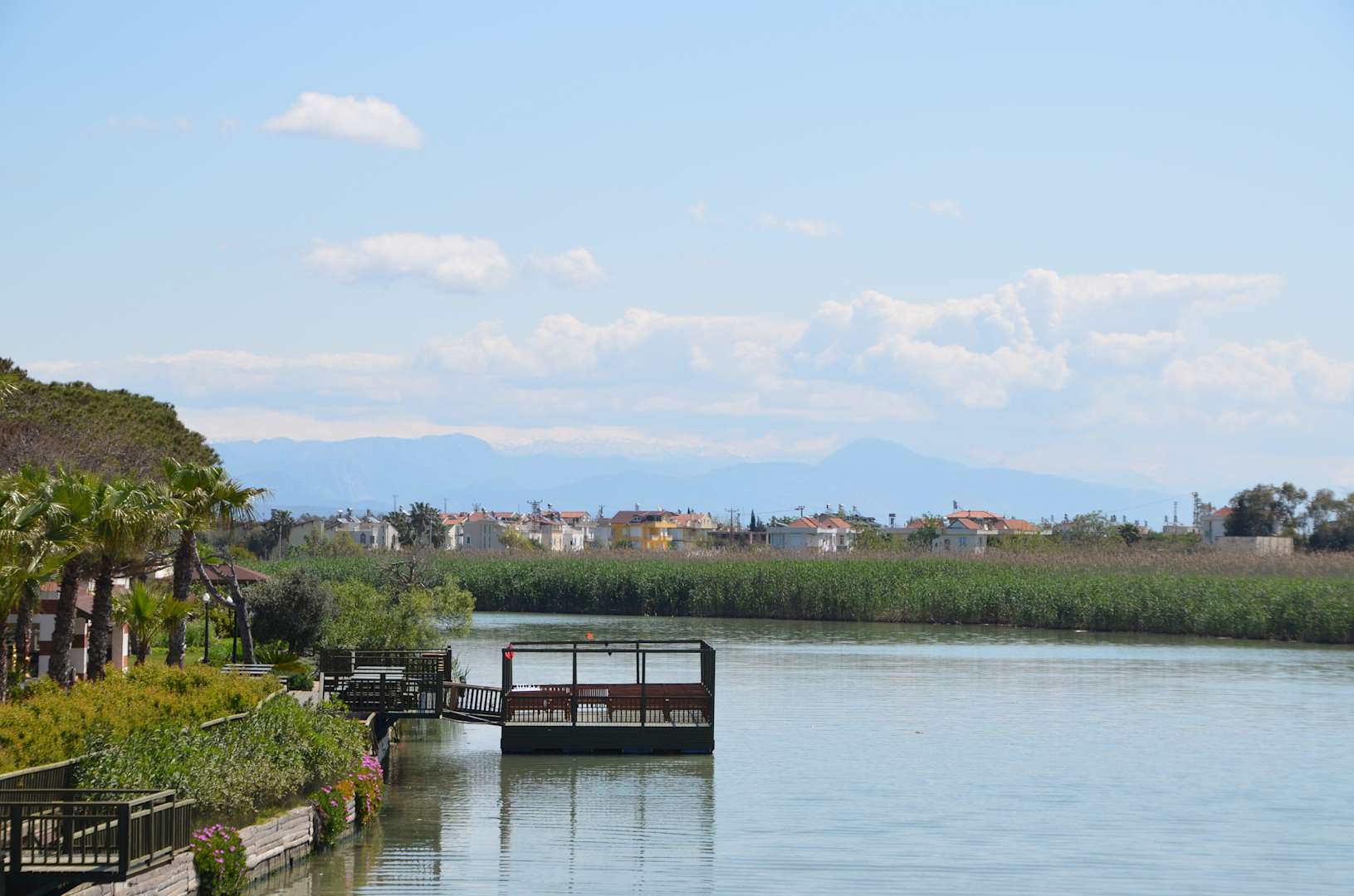 Fluss mit Restaurantterrasse "Kuyo"