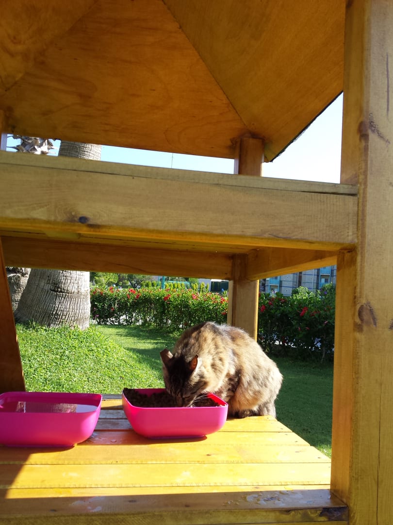 Das Katzenprojekt mit deutschen Tierärzten. Tülpchen beim Frühstück.