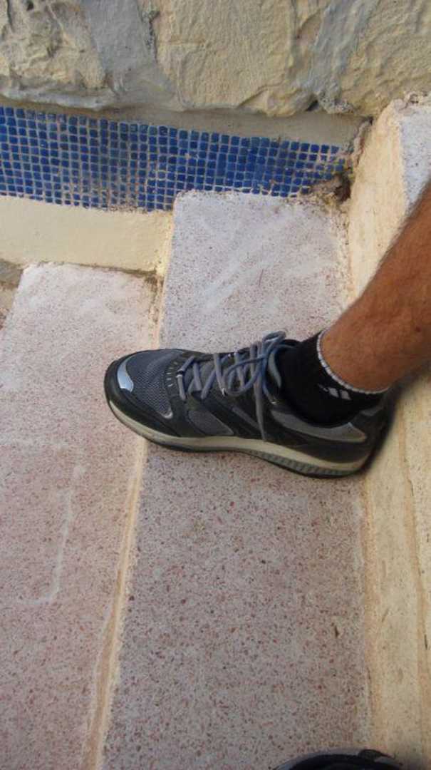Treppenstufe zu der 1. und 2.EtageUnfallrisiko durch steile und kurze Stufen (Schuhgröße 42) in die oberen Etagen