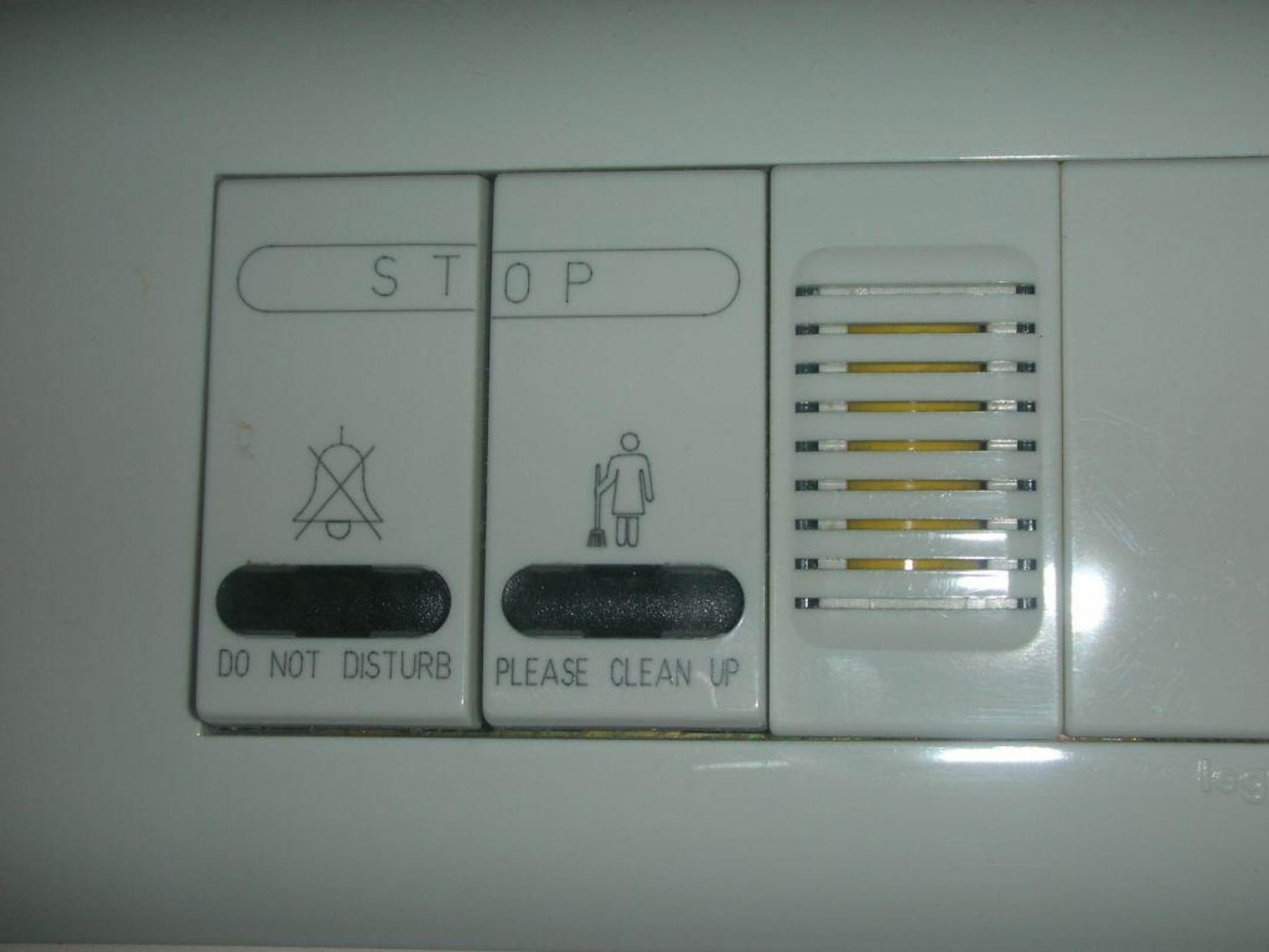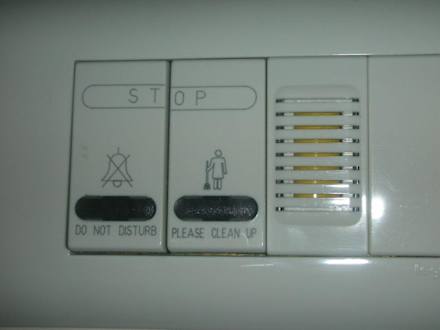 Anhand dieser Knöpfe konnte man wählen ob das Zimmer aufgeräumt werden soll oder ob man nicht gestört werden möchte. Vor der Zimmertür leuchtete ein dementsprechender Hinweis für das Personal auf.
