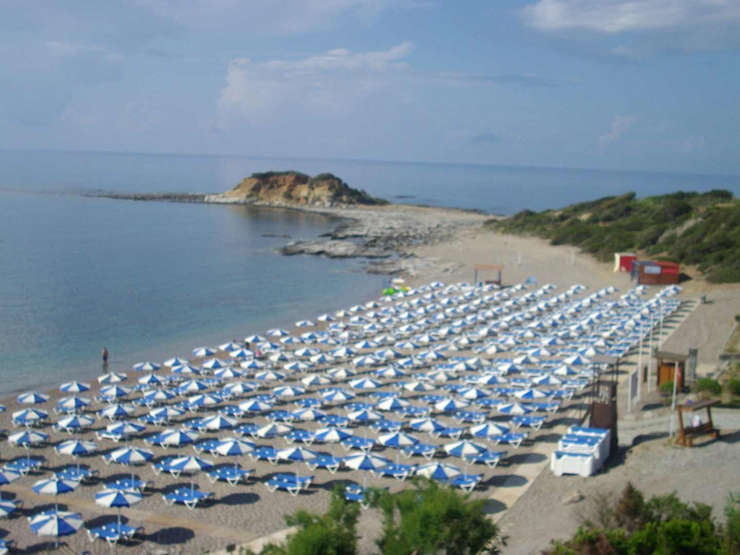 Strandliegen und Schirme