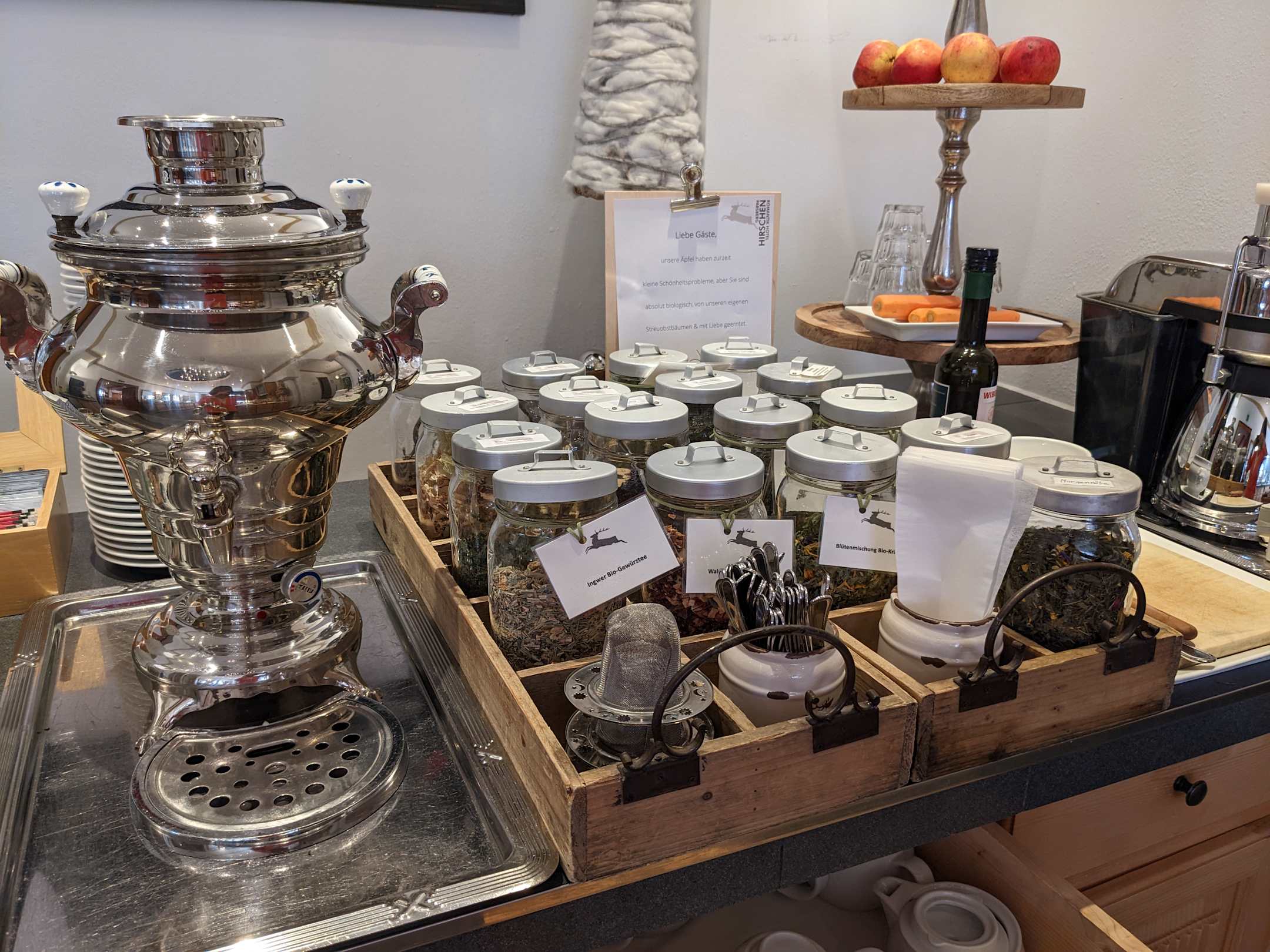 Eine reiche Teeauswahl am Frühstücksbüfett!