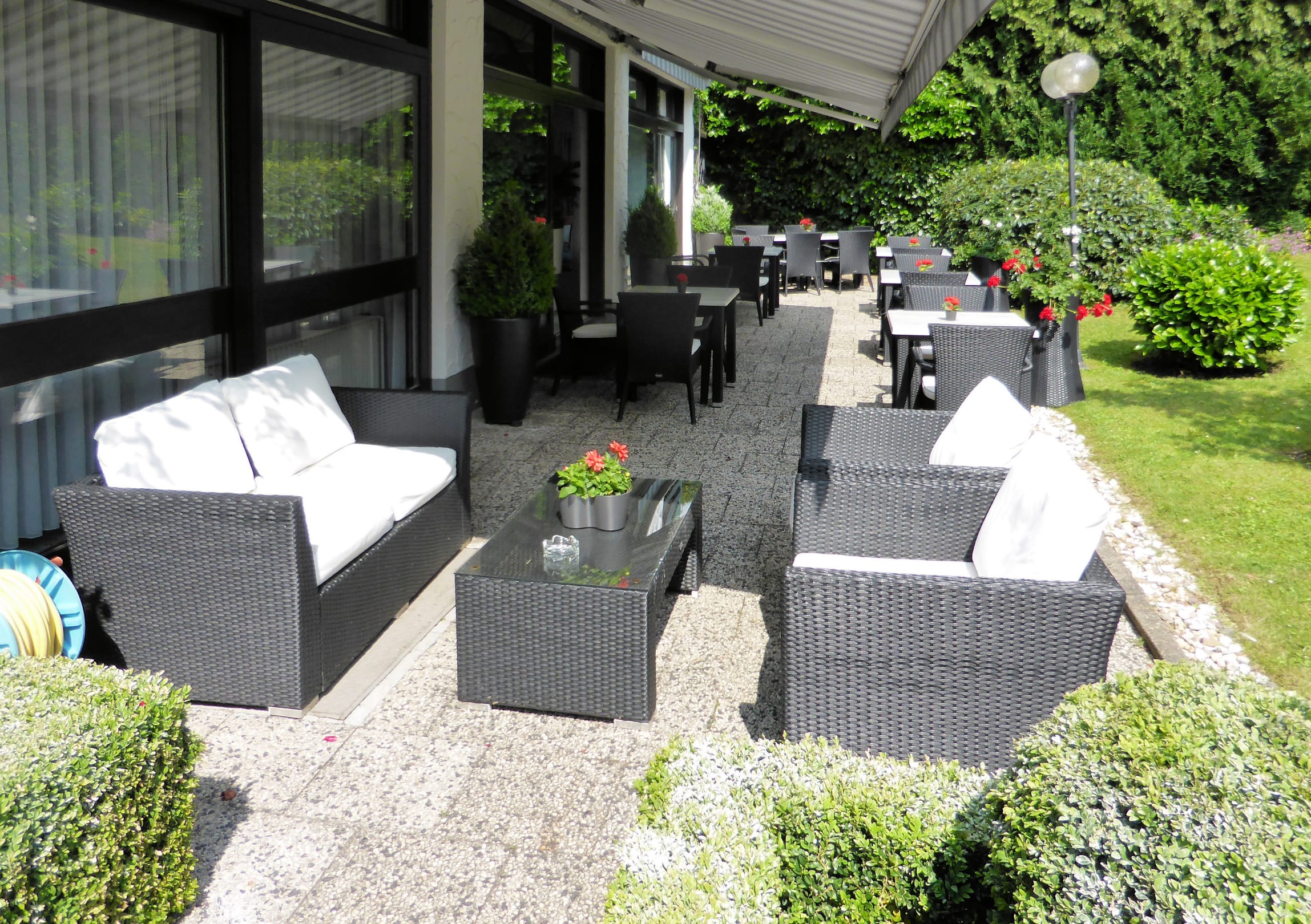 Schöne Terrasse vor dem Hotel