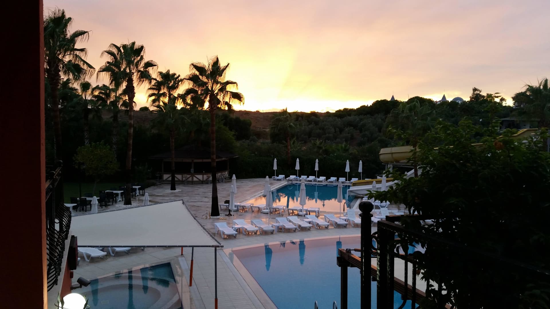 Soonenuntergang am Pool