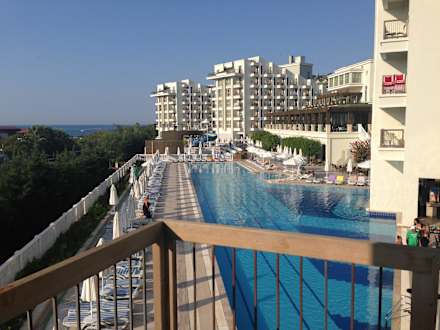 Der Blick vom Balkon auf die Poolanlage