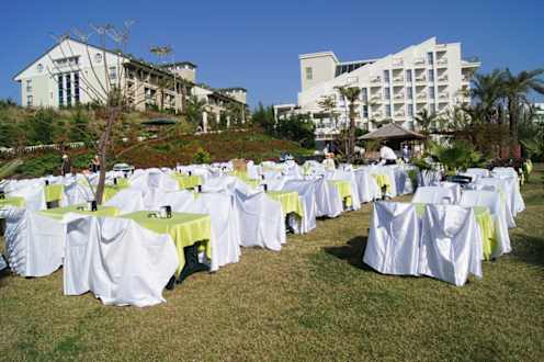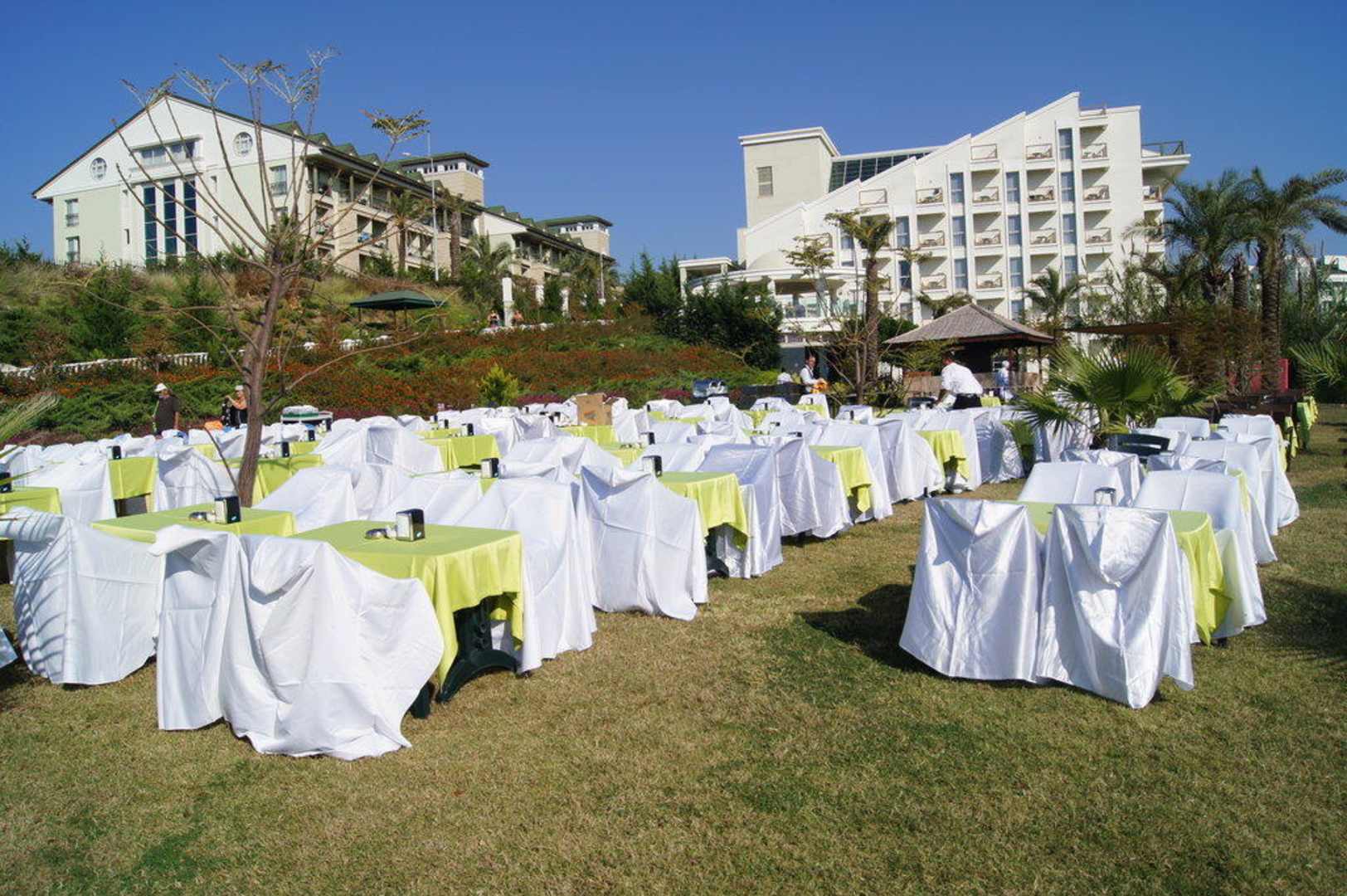 Zum Saisonende wird mittags auf der Hotelwiese gedeckt