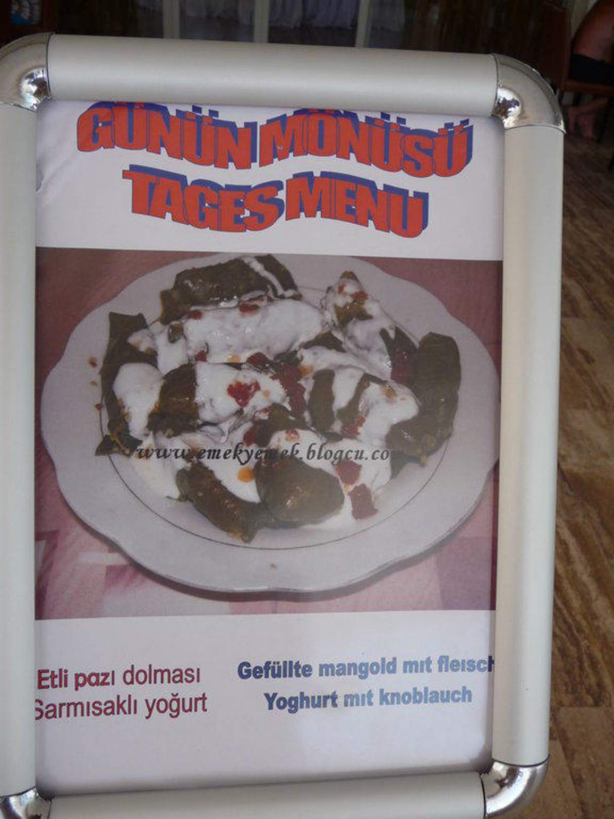Tagesmenükarte an der Poolbar. Immer lecker... dazu Büffet im Innenraum.