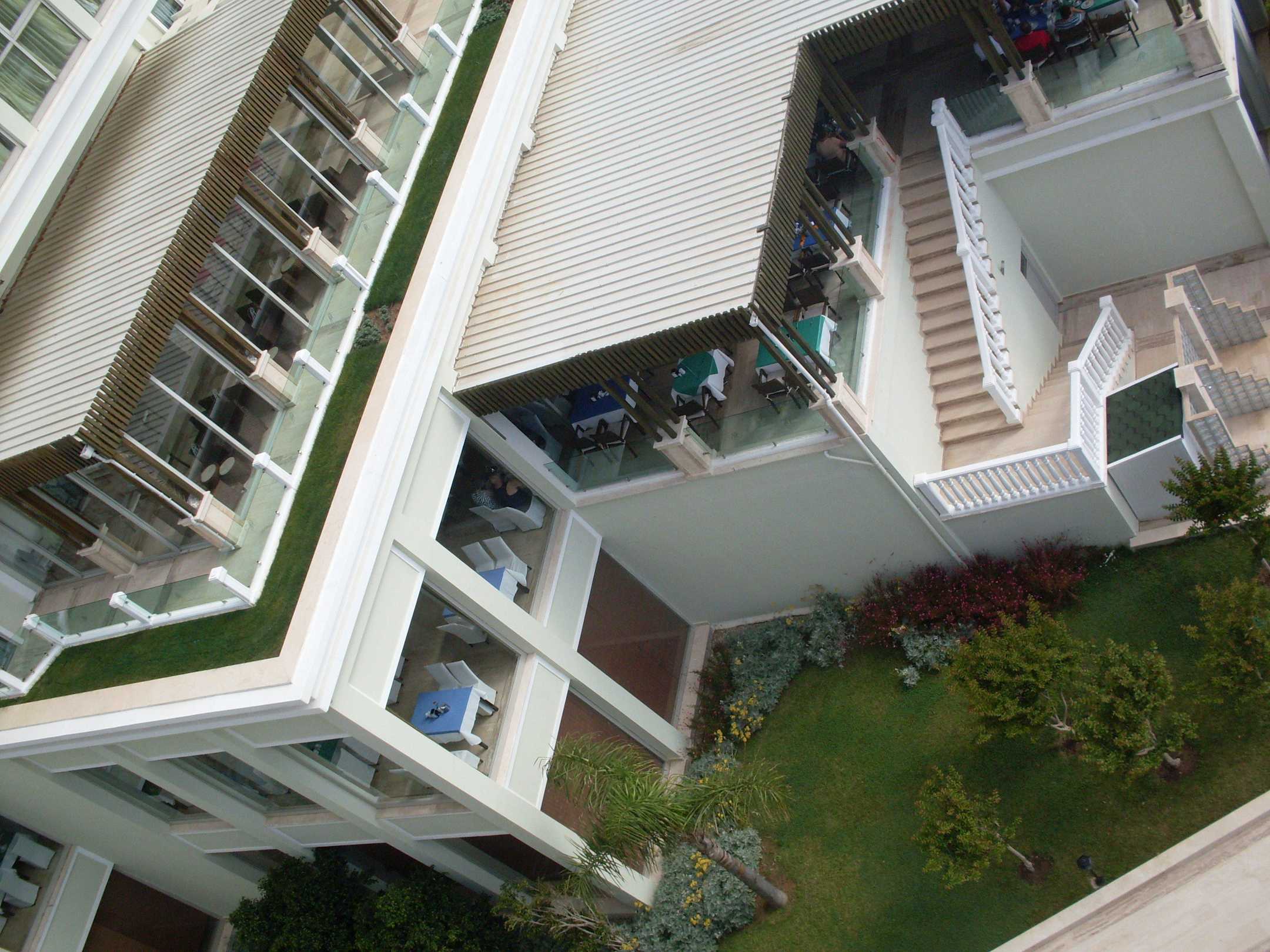 Vom Balkon auf des Restaurant/Buffet