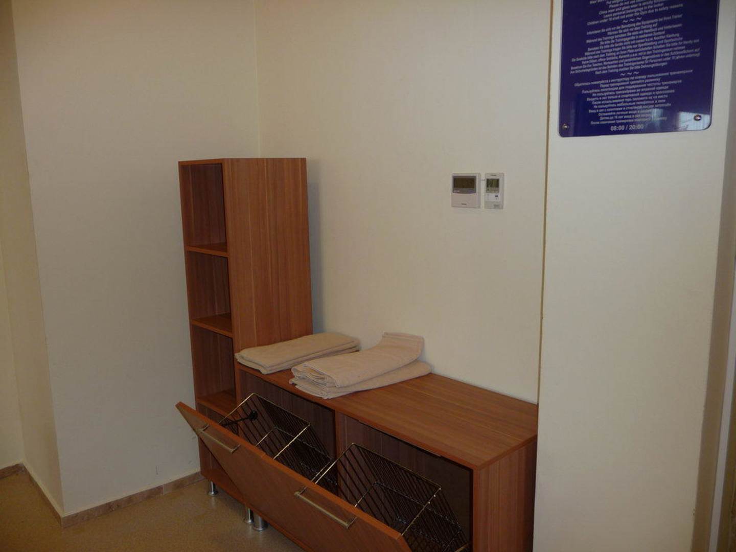 frische Handtücher mit Schrank für benutzte Tücher