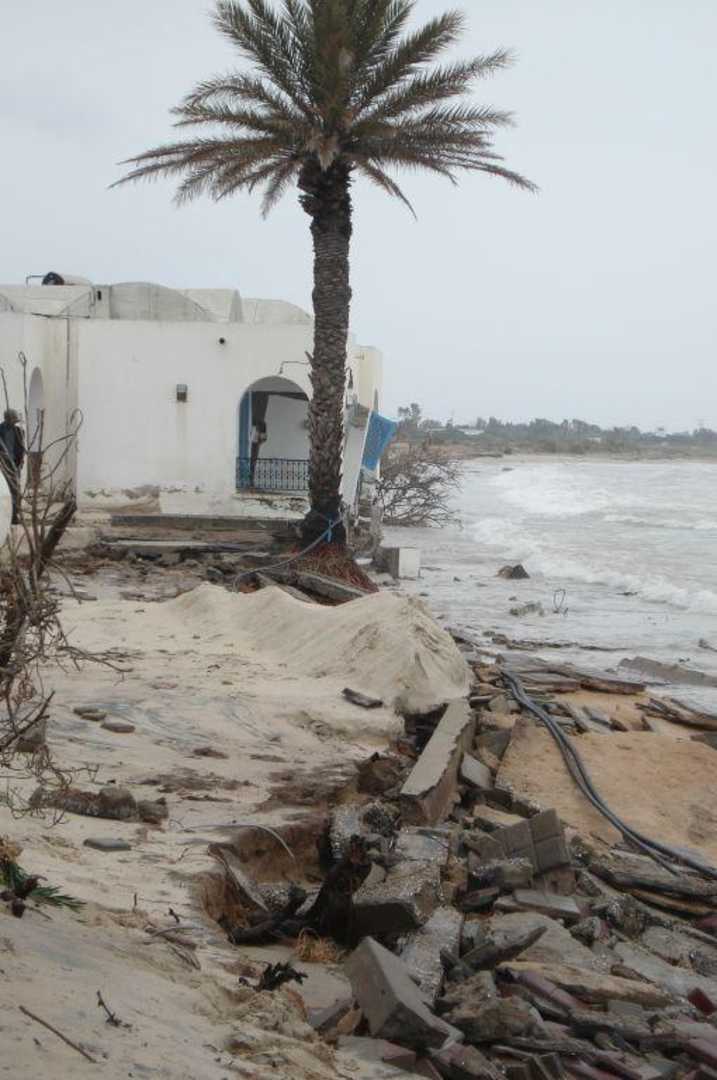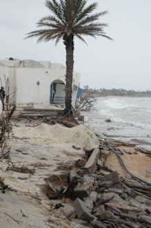 Eisturzgefährdeter BungalowDiese Bilder habe ich nur machen können, weil ich mich durch die Absperrungen nicht aufhielten ließ. Der abgelichtete Bungalow war so stark unterspült, dass er sehr! große Risse hatte und eine Wand sich schon etwas verselbstständigte. Selbst wenn der Strand während unseres Aufenthaltes wieder hergestellt worden wäre, hätte ich meine Kinder nie unbeaufsichtigt springen lassen können.