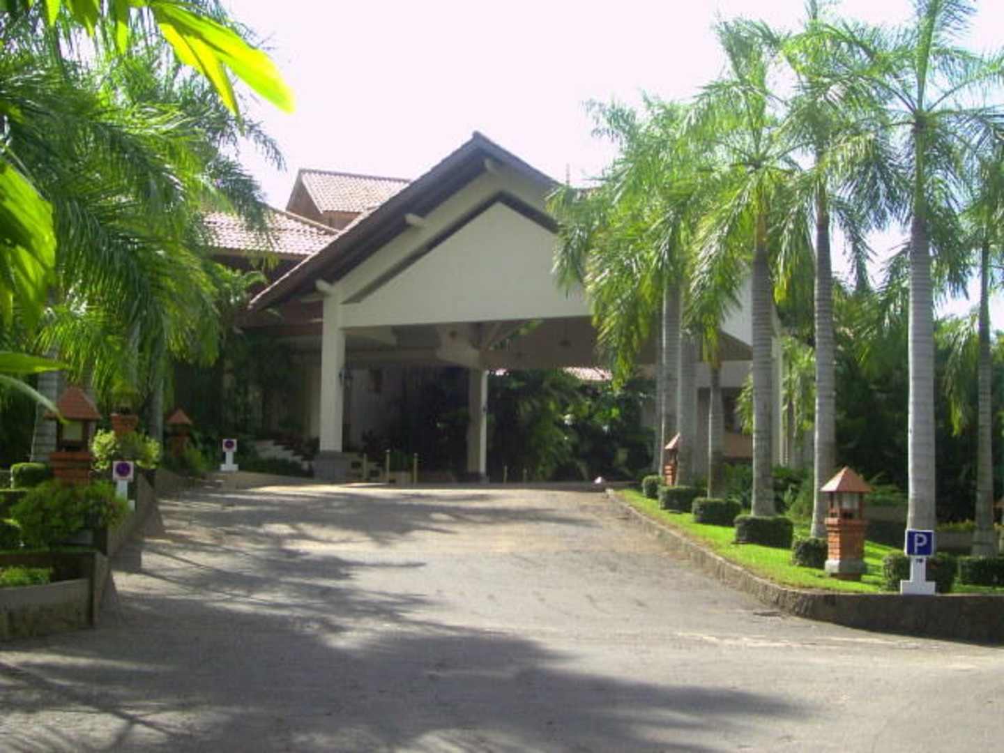 Die Auffahrt zum Royal Palms Beach Hotel, gepflegt und wunderschön grün