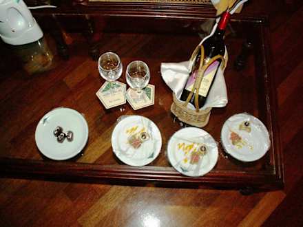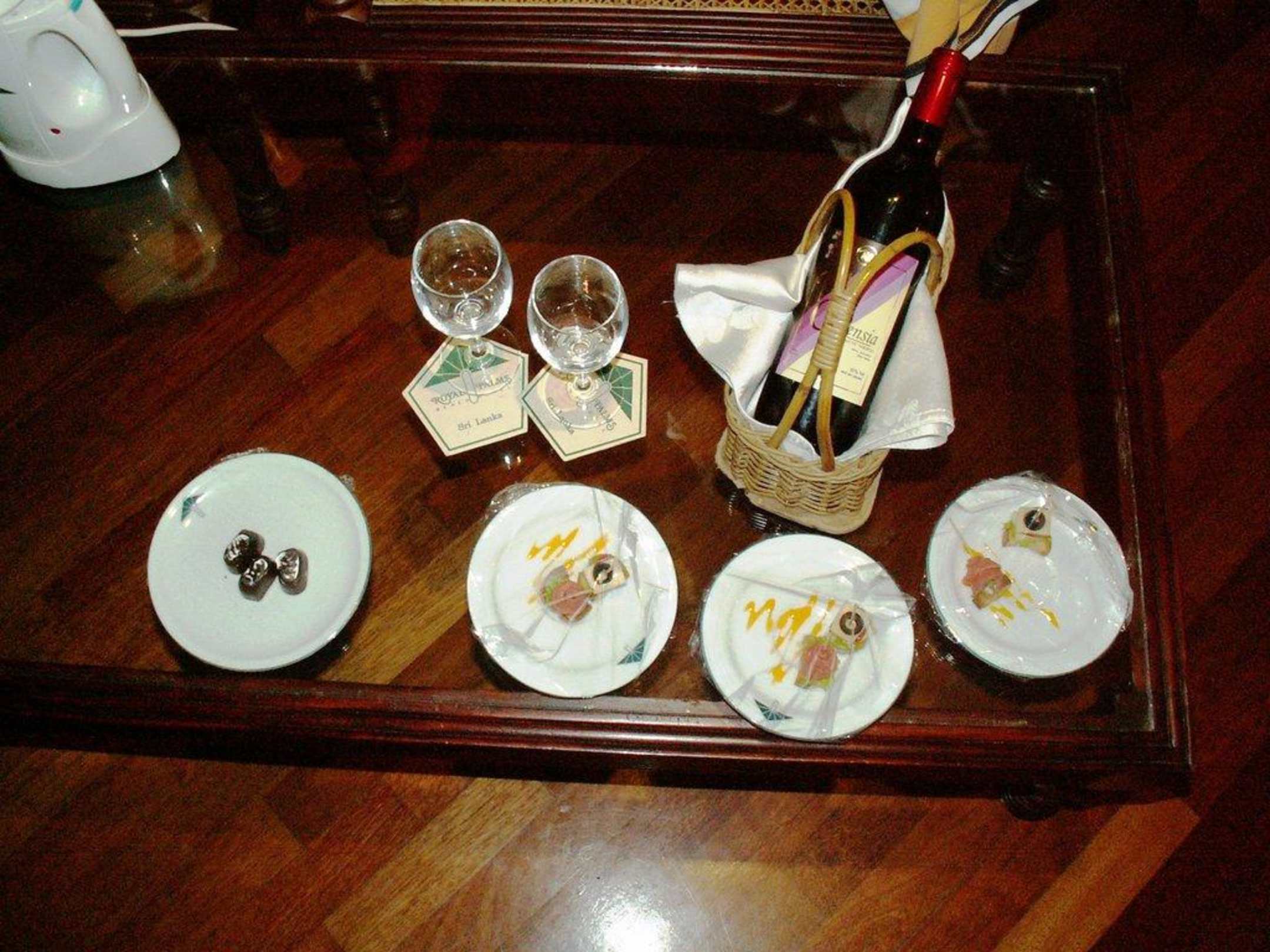 Wein für Wiederkehrer und ansonsten jeden Abend Häppchen und Pralinen.