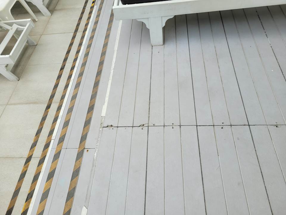 Abgenutzte Holzdielen und alles an den Kanten zerschlissen