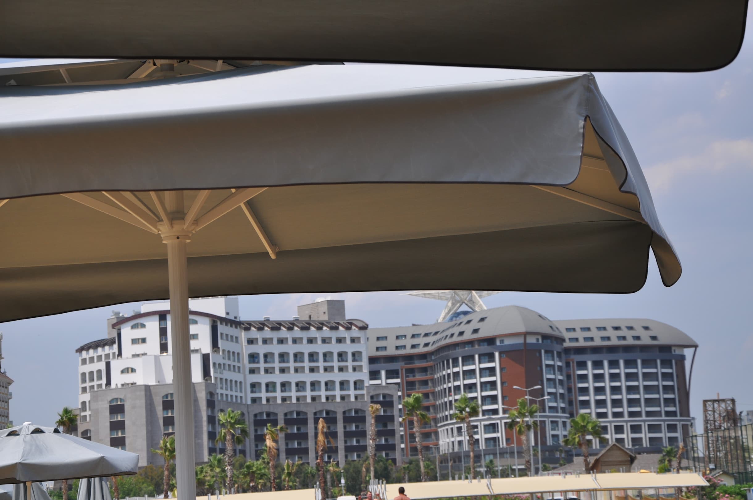 vom Strand sicht auf das Hotel