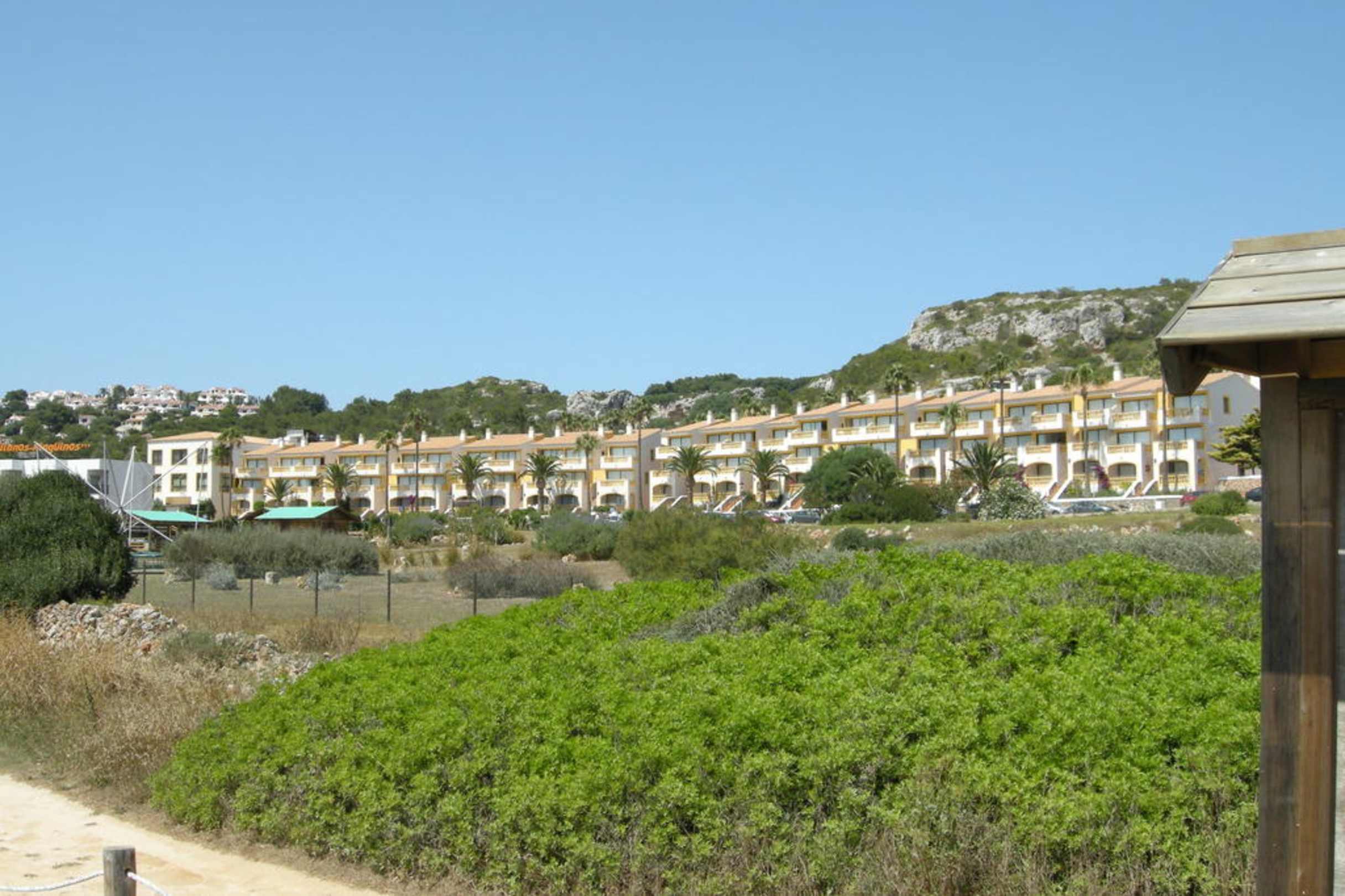 Blick vom Strand auf das Hotel und unser Apartment