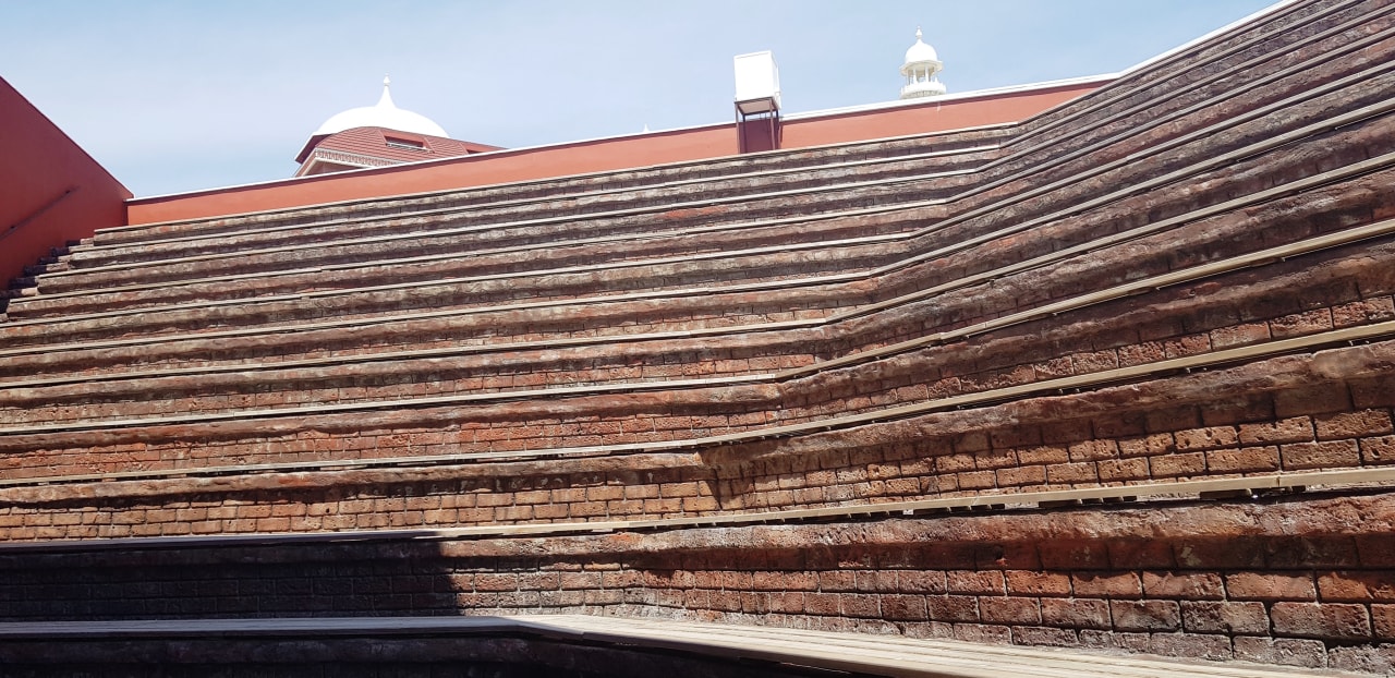 Animation-Arena der Aufstieg für ältere Leute sau blöd gemacht, viel zu hoch die Stufen.