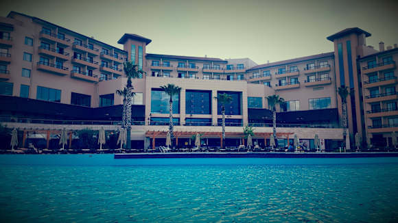 Aussicht vom Pool aufs Hotel