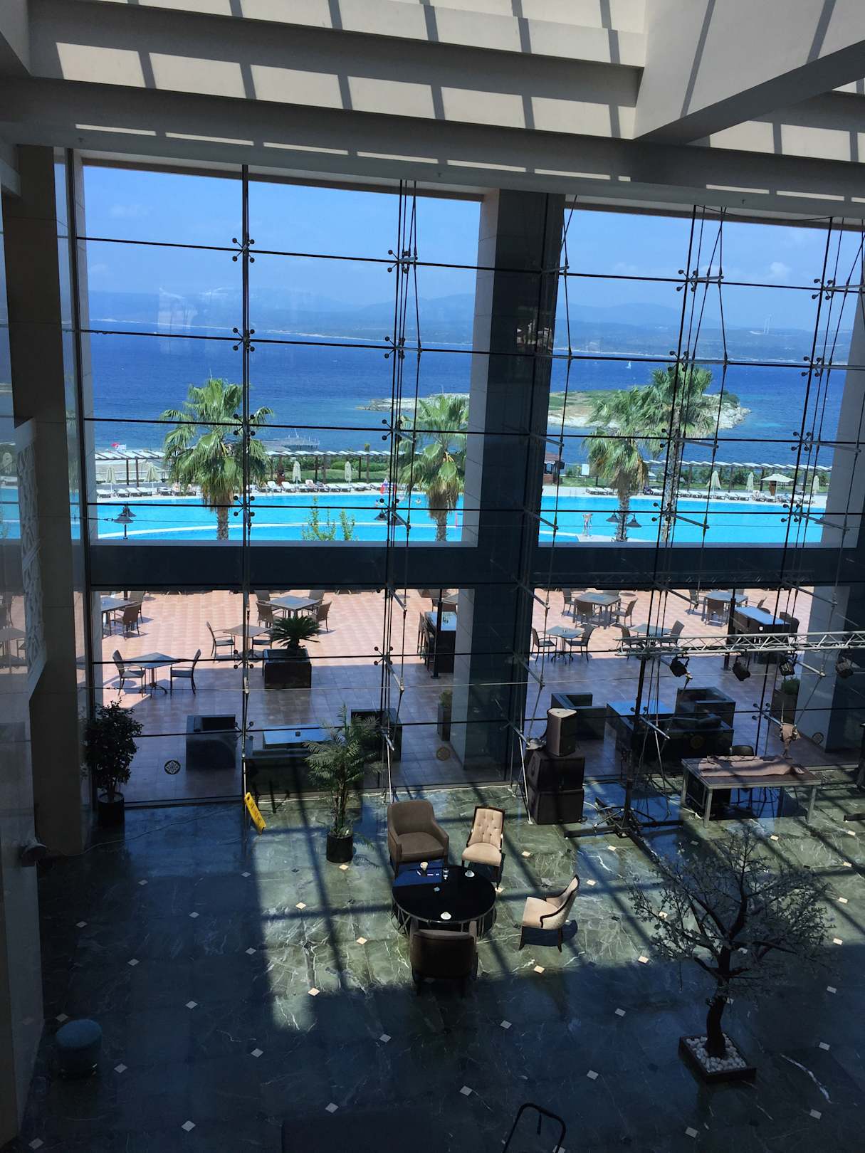 LobbyTerrassenfoyer im EG, hier spielt die laute Musk / teilweise ohrenbetäubend, dass man sich kaum unterhalten kann