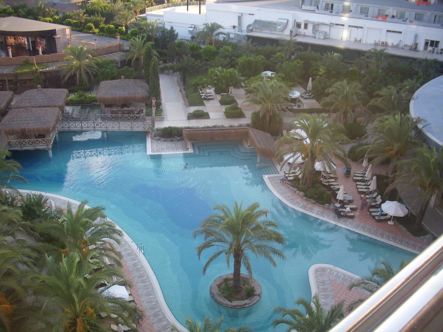 Ausblick aif die Poolanlage vom Zimmer