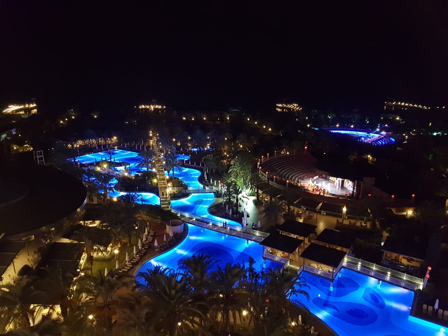 Ausblick vom Zimmer auf den Pool und aufs Meer