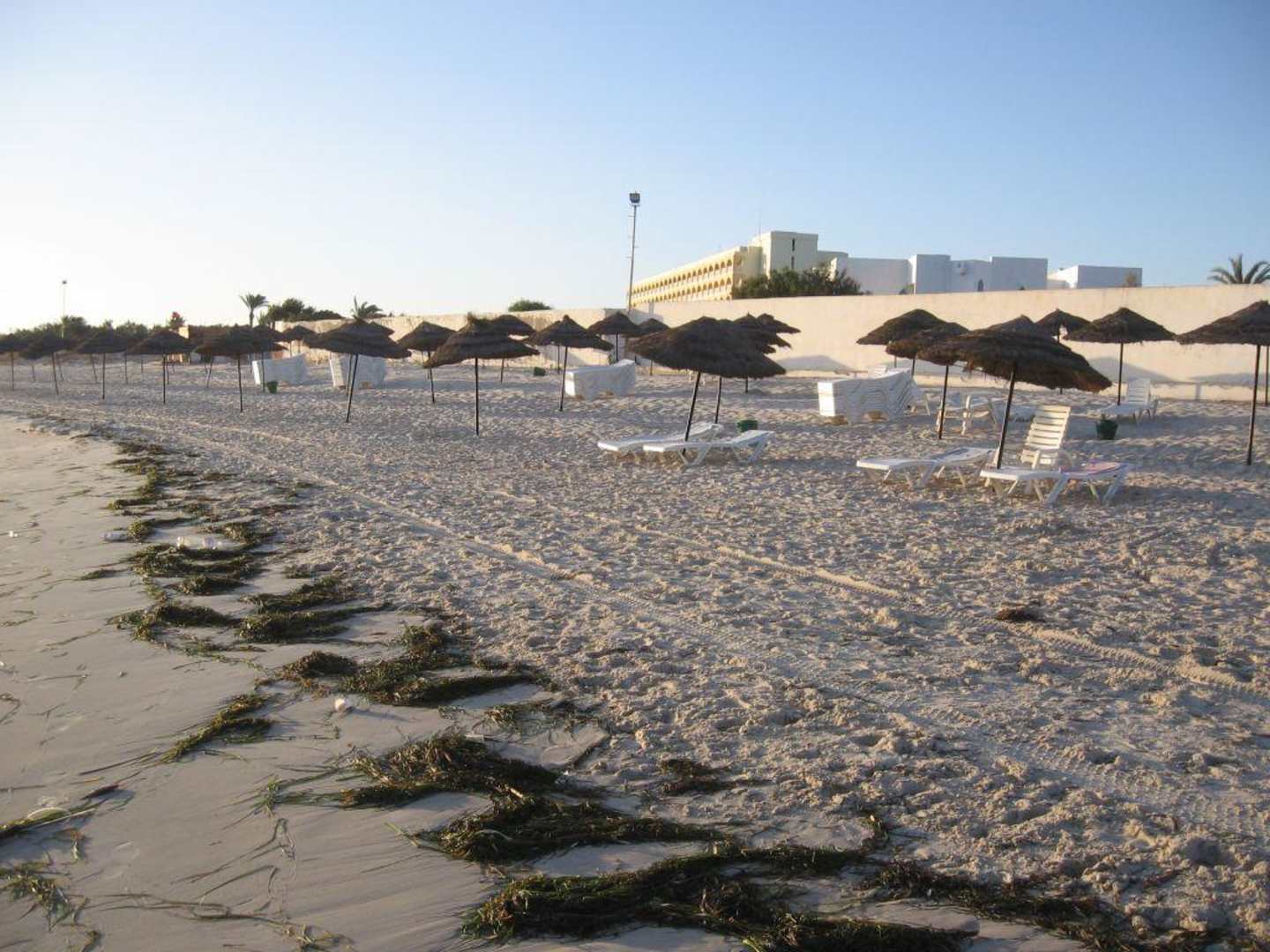 Der Strand morgens um 6.00 Uhr. Noch ist er nicht gereinigt.