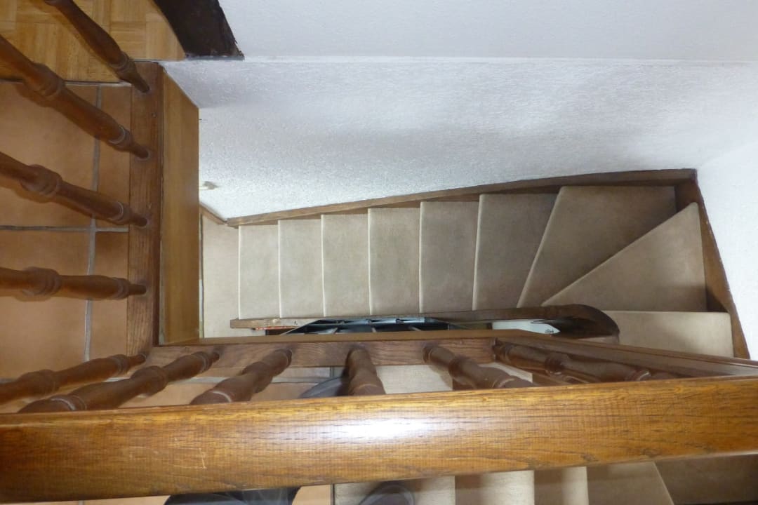 Recht enge unsd steile Trppe in der Ferienwohnung.