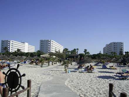 Blick vom Strand zur Hotelanlage