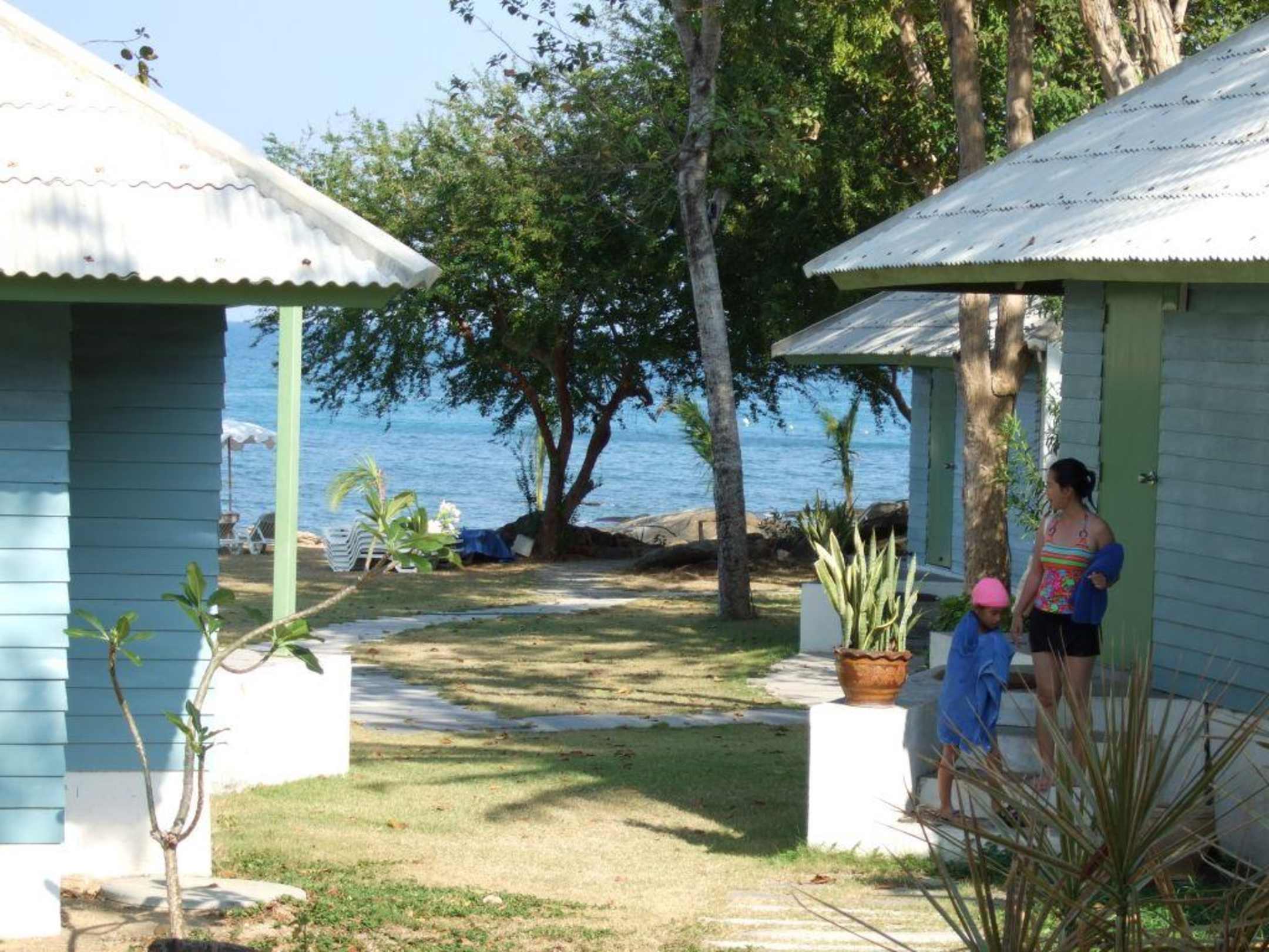 Blick vom Bungalow zum kleinen Strand