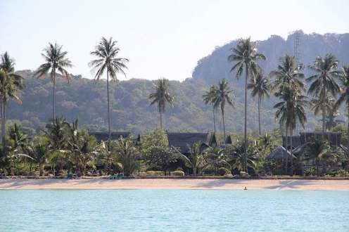 Hotelstrand vom Boot aus