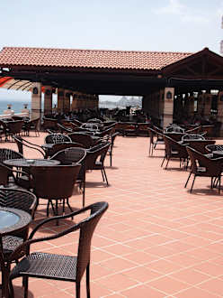 Pool Terrasse mit Blick auf Restaurant Außenbereich