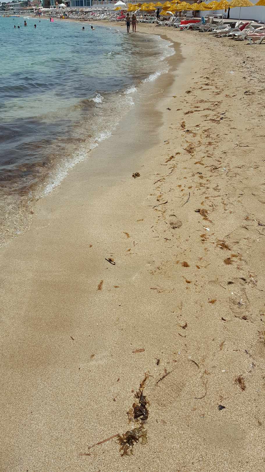 Dreckiges Meer niemand geht ins Wasser stinkt nach Fischen
