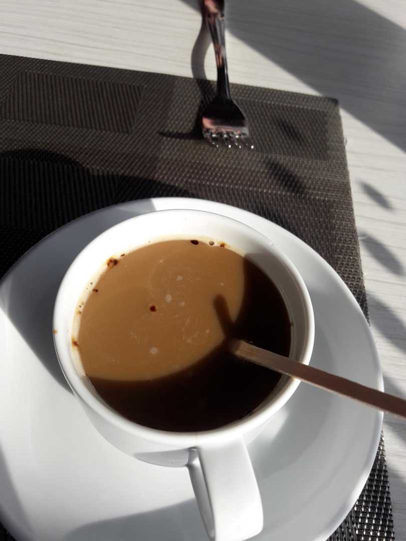 Kaffee, mit Klumpen und ohne Löffel