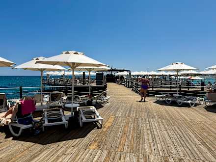 Steg mit Sonnenliegen