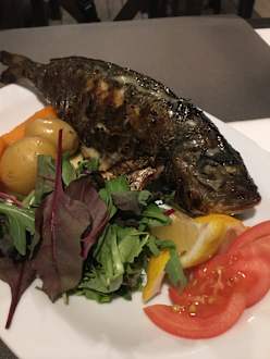 Gegrillte Dorade in der Taverna ( muss vorbestellt werden und ist nicht AI)