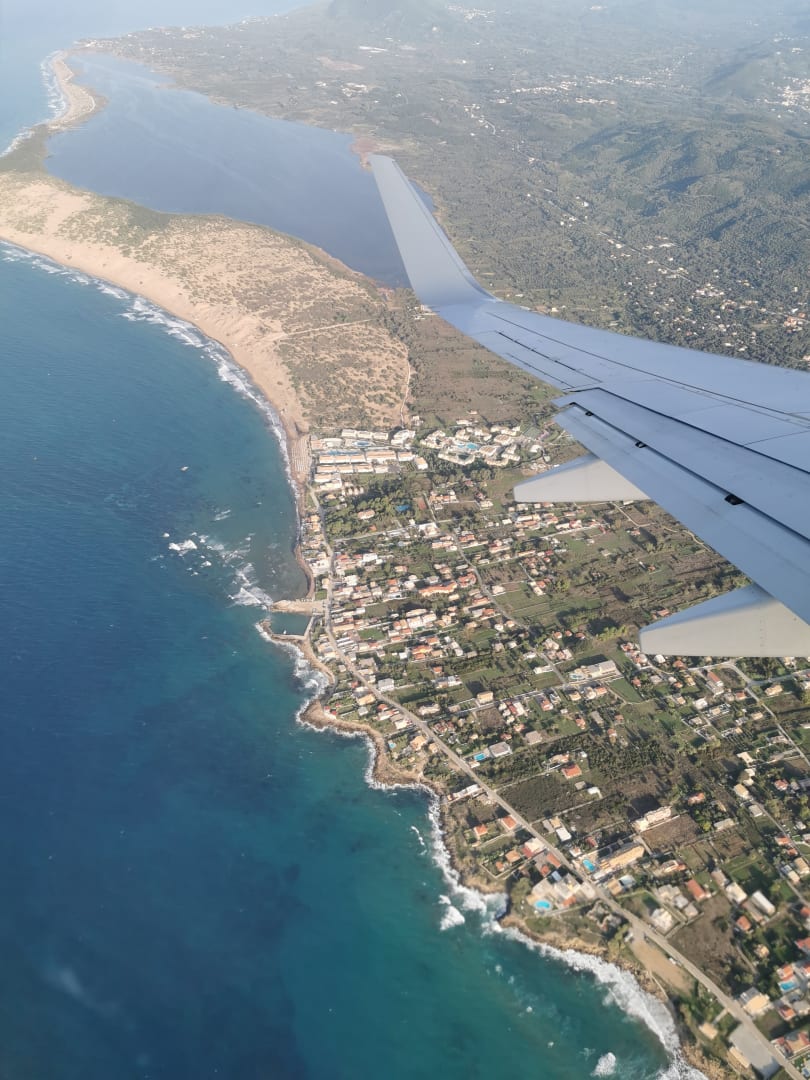 AußenansichtGesamtanlage beim Anflug auf CFU-Flughafen vom 03.10.2020 mit Blick auf den Kollision Sea und das Naturschutzgebiet mit Sanddüne