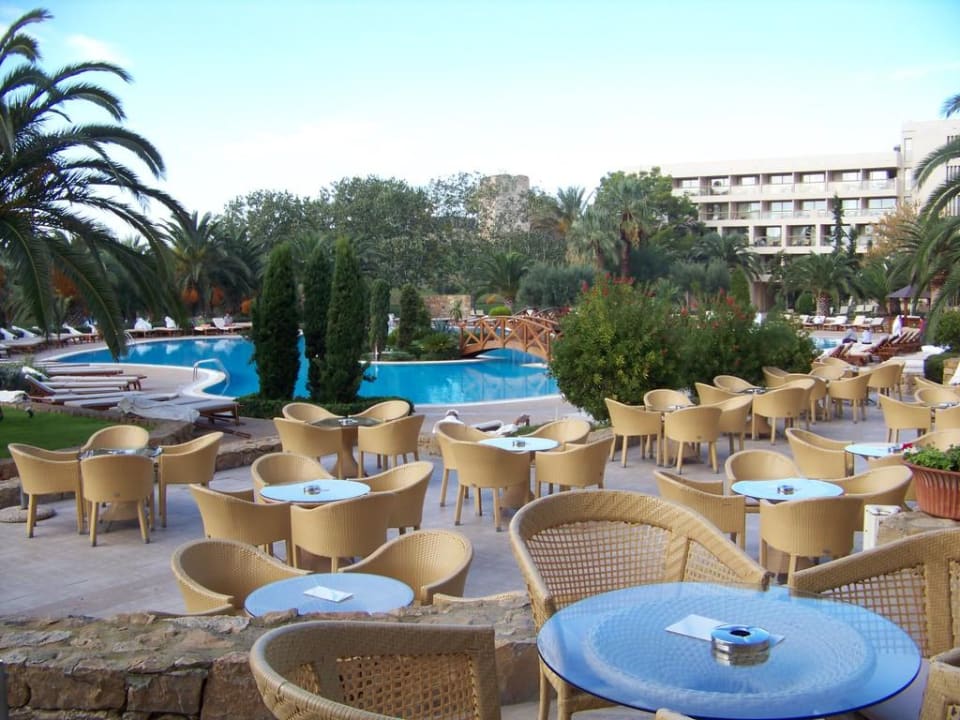 Terrase mit Pool und im Hintergrund der Turm
