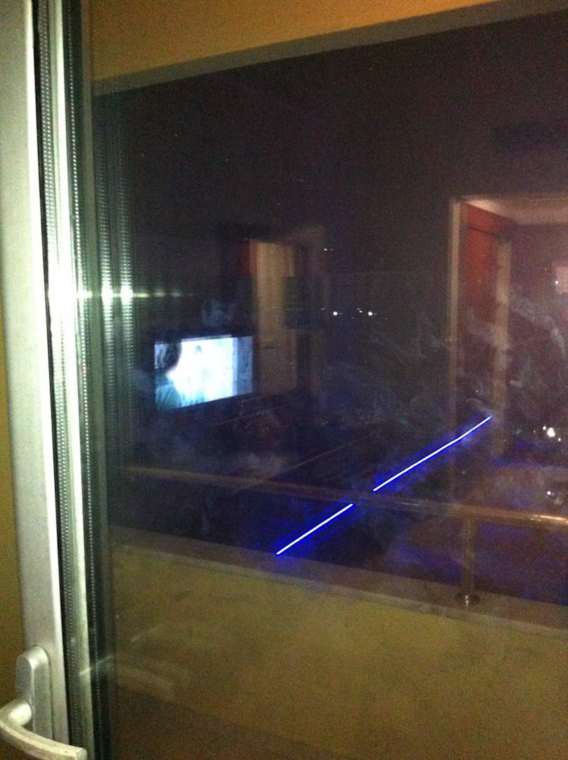 Nicht nur die Scheiben, sonder auch die Möbel waren komplett mit Fettfinger voll. (das Zimmer wurde gerade von uns bezogen und als sauber präsentiert)