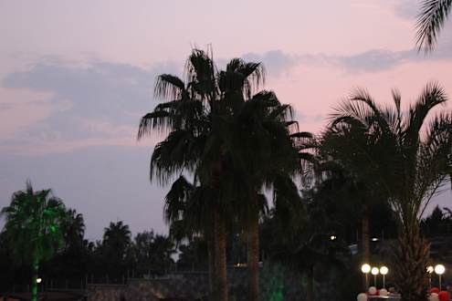 Palmen überall in der Gartenanlage