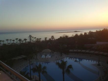 Poolanlage am Abend