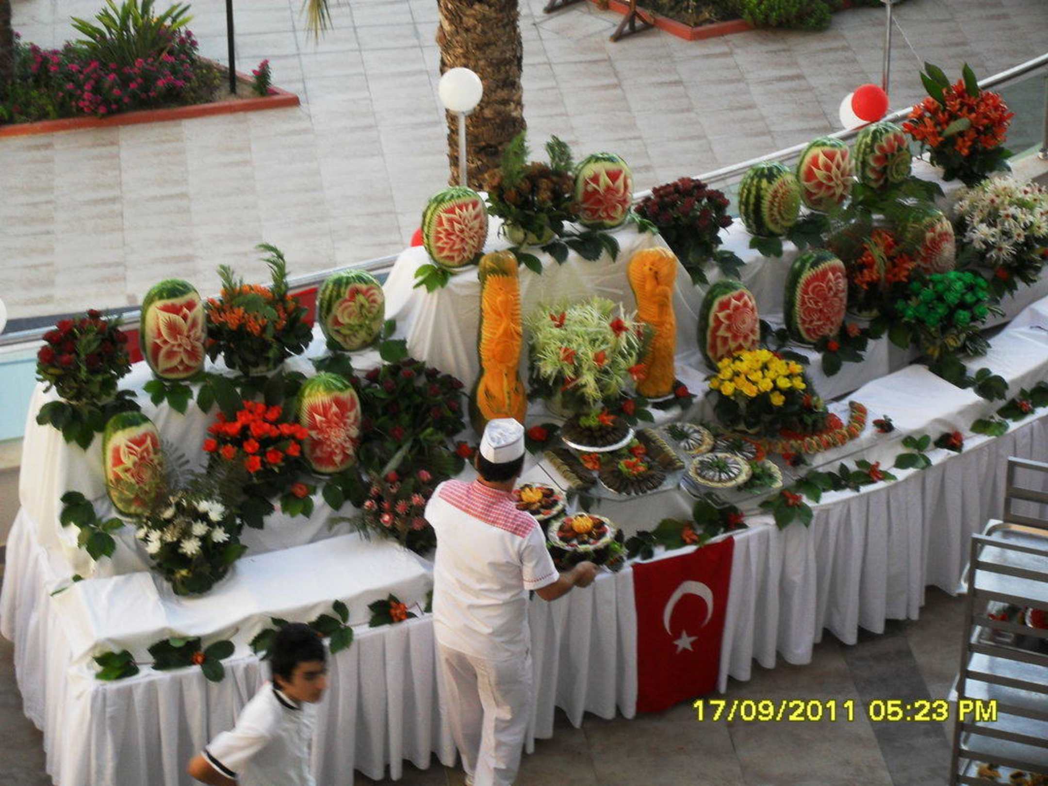 Ein kleines Stück Büffet vom Türkischen AbendAus Obst tolle Gebilde geschnitzt mit viel Geschick super presentiert.So viel Mühe vom Personal