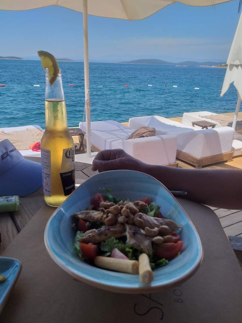 Salat mit Hähnchenbrust. Coruna und Top Ausblick.