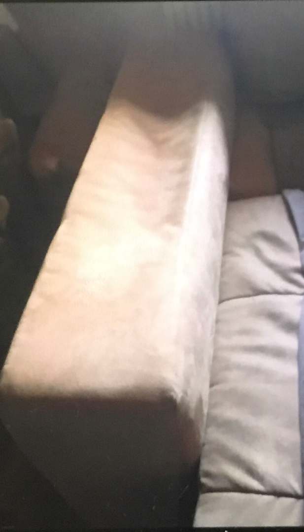 Schlafcouch im Wohnzimmer, sehr in die Jahre gekommen, durchgelegen, fleckig