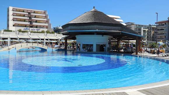 Blick über Pool aufs Hotel