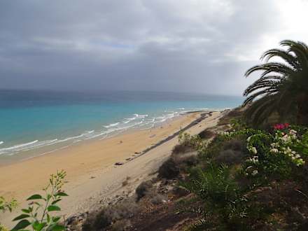 Der Strand bei Ebbe....bei Flut geht das Wasser bis zum schwarzen Rand (Steine)