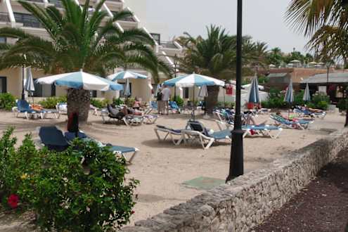 kleiner hoteleigener kostelloser Strandbereich ca 50m hinter dem öffentlichen Strand (am öffentlichen Strand sind die Liegen kostenpflichtig)